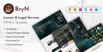 Promo price for 1st 20 sales $29 $11 One-time purchase and receive lifetime update Responsive on all devices Built with Bootstrap v5.3.3 Bryn is a clean, modern, and professional HTML5 template crafted specifically for law firms, legal advisors, attorneys, advocates, barristers, legal consultants, and other law-related businesses. Designed with usability and aesthetics in mind, Bryn